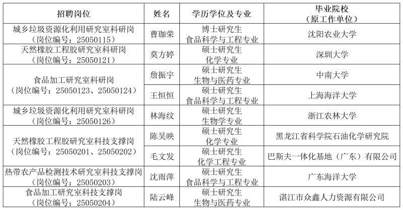 中国热带农业科学院农产品加工研究所2025年度第二批公开招聘工作人员笔试已于2025年6月28日结束,现将入围考生名单、笔试成绩以及面试等事宜公告如下: