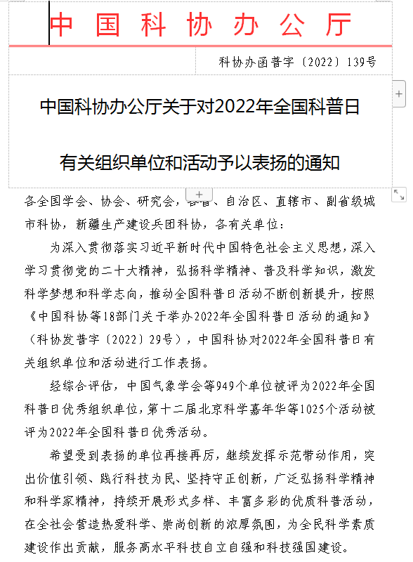 加工专委会”)主办的“2022全国科普日——食品安全与营养健康科普活动”被评为2022年度全国科普日优秀活动。