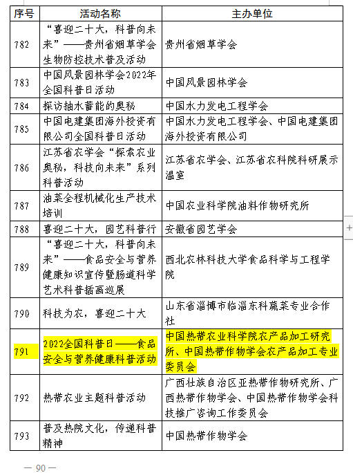 日前,中国科协办公厅印发了《关于对2022年全国科普日有关组织单位和活动予以表扬的通知》。中国热带农业科学院农产品加工研究所(以下简称“加工所”)荣获“2022年全国科普日活动优秀组织单位”称号,由中国热带作物学会农产品加工专业委员会(以下简称“
