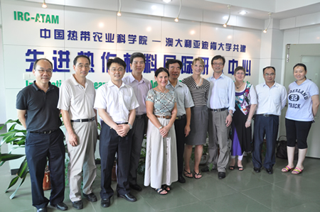 五月二十五日上午,澳大利亚迪肯大学代表团一行四人,在主管科研副校长Professor Lee Astheimer率领下到访中国热带农业科学院农产品加工研究所。热科院王文壮副院长、人事处唐冰副处长和橡胶所周建南副所长以及加工所彭政书记等领导与澳方人员就继续办好中澳先进热作材料国际研究中心、澳大利亚迪肯大学为热科院培养博士等高级人才的可行性模式、中澳双方联合申请国际合作课题等展开热情友好且富有实效的会谈,取得了卓有成效的意向性结果。会谈开始,王文壮副院长用英文致热情洋溢的欢迎辞,期间澳方Lingxue Kong教授代表澳方作了题为中澳双方合作前景的展望报告,中方由加工所彭政书记介绍热科院的整体概况。