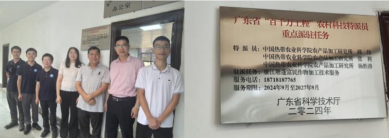 广东“百千万工程”农村科技特派员派驻廉江塘蓬富民作物加工技术服务的重点任务,主要依托我所食品加工研究室、农业农村部热带作物产品加工重点实验室,还得到了国家荔枝龙眼产业技术体系、国家重点研发计划项目课题、湛江市县域富民产业技术研发与示范推广等项目的支持。